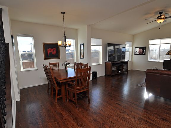 Beautiful 2-Story home with rich hardwood flooring throughout. Tile flooring in all baths. Three bedroom, Study and an upper level loft. Oversized three car garage. Kitchen features granite slab counters, stainless steel appliances w/gas range, refrigerator, microwave and dishwasher. Upgraded cabinetry with dove tailed drawers, lower roll out shelves, soft close doors and drawers. Large pantry and center island. Dining nook opens to the Great room. Surround sound pre-wire and ceiling fan. Walk out to the covered patio from the kitchen to the landscaped rear yard. The upper level features the Master Bedroom w/private bath, two additional bedrooms, a large loft area, second full bath and laundry room. Main level also features a study w/barn door. The solar panels is fully owned. One owner home and is move-in ready! Don't miss this gorgeous home!