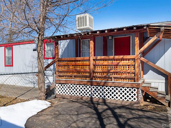 Huge Price Drop!!!! Great Home, Great Location!! One Owner, in great condition & move in ready. New roof, new living room carpet, two sheds, mature trees, fully fenced and front & back decks. Ample kitchen cabinets & counter space. All appliances included. Huge storage shed with electricity and loft space included. Great location in Arvada, close to interstates, many schools & businesses. Enjoy the community pool, parks and clubhouse. Lot Rent is $790/mo. Lender financing is available, call today! Dogs under 35 lbs allowed.
