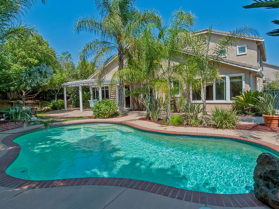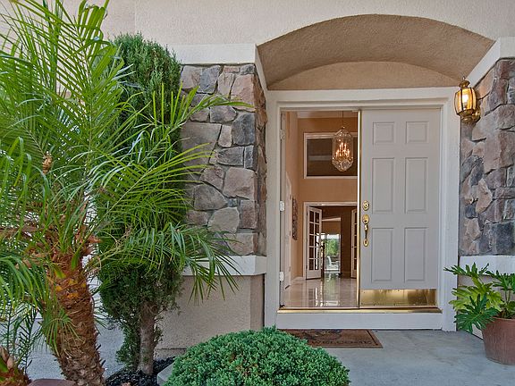 Dallas Ranch Estates private tropical oasis backyard with pool and covered patio, 3322 sq. ft., 5 bedroom, 3 bath, master suite located on first-floor, grand marble entry, fireplace in living room, chef's kitchen with double ovens, gas cook top, Corian counters and wine refrigerator. Family room pre-wired for surround sound, huge loft upstairs, 3 car garage plus RV/boat side yard access. * First-floor master suite * Gas fireplace in living room * Whole house fan and dual zone A/C * Huge loft * Pre-wired surround sound * Tropical landscaping * Pool with waterfall * Covered Patio * RV/Boat side yard access