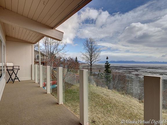A wall of SOUTH windows provides UNOBSTRUCTED VIEWS of the Kenai Mts, Turnagain Arm, & Coastal Wildlife Refuge. Inside features open living w/vaulted ceilings capitalizing on the view & the over-sized kitchen is perfect for entertaining, from sunrise to sunset! Outside features a huge manicured lawn (HOA responsibility) & convenient location near miles of trails, Kincaid Park, & midtown shopping.