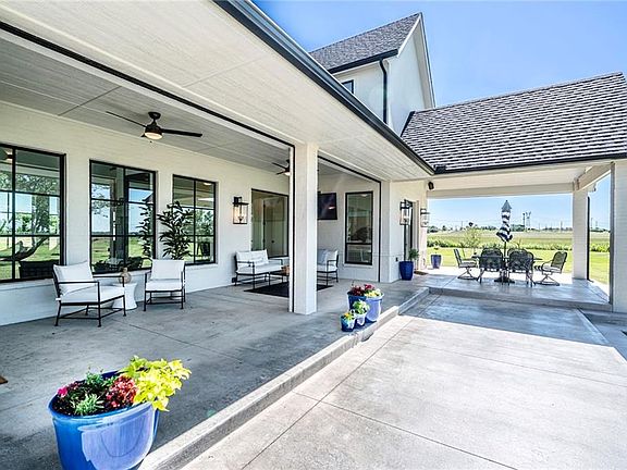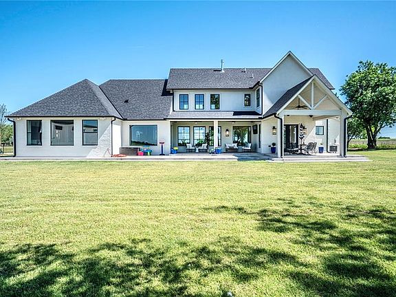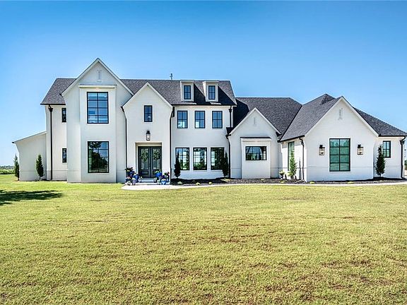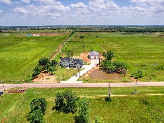 Stunning custom on 3 acres with 50x80 shop in NW Norman close to Healthplex. Natural light abounds in this Byrd home featuring 2 story living room, 2 downstairs primary bedrooms, (one used as bonus), study, 3 bedrooms up. 4.5 bathrooms. Open plan w large chef’s kitchen, inset cabinets to ceiling, 48" gas range, prof double ovens & frig & freezer, walk-in pantry, mud room. Designer fixtures and hardware, media system, speakers, hidden room, Nest. Expansive back porches w A frame and Phantom screens. Exterior perimeter security cameras and gate. First story handicap accessible doorways. Post tension slab, 6” thick concrete driveways. Primary closet built-ins. Hardwood and tile throughout. Well water w/softener, recirculatory instant hot water and kitchen reverse osmosis. 50x80 drive thru shop w insulation, 3 phase electricity, alarm, cameras, 240 volt plug-ins, prop heater, & perimeter lighting. Two 14x14 & one 16x14 garage doors. See list of amenities in home.