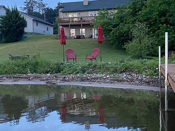 Fantastic Lakefront perfect for vacation rental up north!! Unobstructed views of Michigan's largest inland lake- Houghton Lake!! Sitting on a bluff with a walkout basement, this beauty is super cool for entertaining guests. Large concrete area with hot tub and expansive deck area to enjoy drinks and dinner while watching the sunsets. This unique vibe in this lakefront spacious home could be yours to do just about anything!! This location would be great for signage too for a vacation rental. Located next to a really nice resort, get your creative juices flowing on this one!!