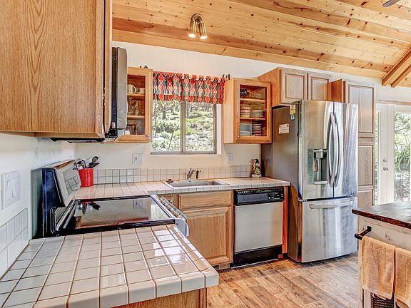 - Exterior Features: Covered Porch/Deck, Tall Pines on Lot, In the Trees, View of Mountains, Satellite Dish, Patio, Panoramic Views, Grill, View of Town