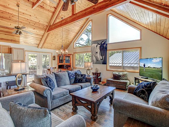 This cabin checks off just about every boxfor most buyers. It backs the forest & is on .96 acre of treed land with its own functioning well. It features 2 bedrooms, 2 full baths plus a loft. It also has central air & heat, a metal roof, no maintenance siding & trex decking. Pavers & a rock retaining wall that makes a gorgeous patio where you can sit & watch the wildlife or go to the front deck where you can see the endless views overlooking Pine and the surrounding mountains.ALL OFFERS WILL BE REVIEWED ON WEDNESDAY JUNE 2 2021.