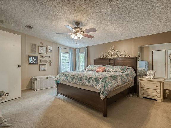 This sweet piece of paradise will not last long in this market. With 3 acres of wooded land and gorgeous gated entrance to the driveway you'll never want to leave home. This home has been updated at every turn, starting with the front porch. Step inside to this open floor plan with gorgeous wood look floors throughout, and plenty of space. Massive kitchen boasts tons of cabinet space and updated appliances, with an additional eat in section off the back. Split bedrooms offers added privacy for your family to spread out. Master bedroom complete with a massive walk in closet, and spacious on suite with separate garden tub, walk in shower, and comfort height double vanities. Metal roof is less than 2 years old, new sump pump and tankless water heater, and new/updated water softener and aerator. Additional concrete slab installed with electric for your RV and camper hook ups and parking. Massive mechanic shop on property is complete with 220 electric and a vehicle lift.
