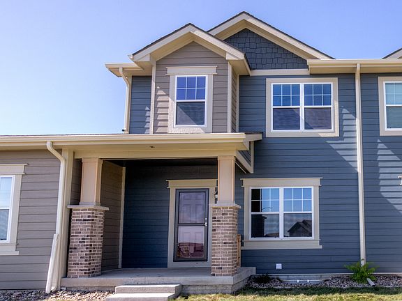 The Reilly plan has three bedrooms, two and a half baths, and a two-car garage. This Brownstone-style home has a garage entry at the back and an inviting porch on the front entry. The open-concept living room, kitchen, and dining room are on the main level. The upper level has three bedrooms, including two baths and a laundry room. The lower level can be partially finished to add an additional family room and bath. All lower-level finish options are available.