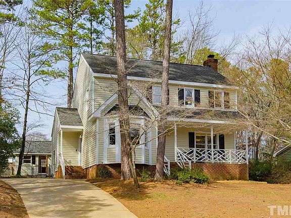 Recently remodeled & ready for you to move in! 1st floor includes stylish new plank flooring, spacious family room features cozy gas log fireplace, kitchen w/ new stainless-steel gas range & microwave, dining area with bay window bringing in lots of natural light, office w/ French doors & a great view. Fenced backyard with fire pit area & workshop w/AC. Back deck includes overhead Edison string lights. Walk up attic offers tons of storage. Located minutes from I-440, Crabtree Mall, & Shelley Lake.