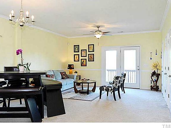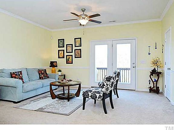 Builders former model END UNIT townhome! Mountain like feel sitting on an elevated lot with incredible views of the Neuse river from the deck! Fully upgraded with designer kitchen, stainless steel appliances, crown moldings throughout, large eat in area, deck and a finished basement w/ a home theater set up! Basement has a full bath w/ access to patio! Located between I440 & I540!