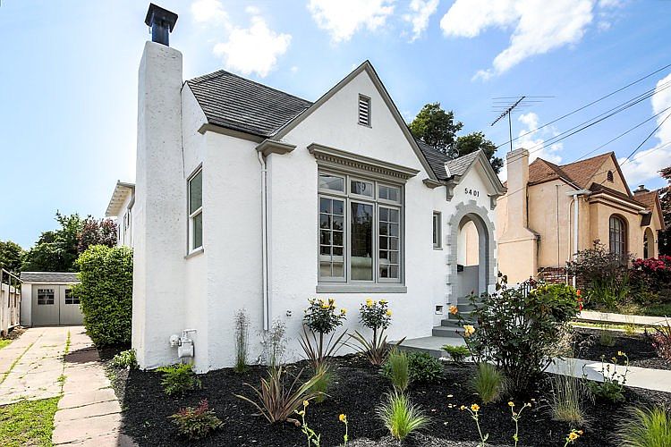 JENNIFER MONTAGUE - Sweet split-level Tudor in Maxwell Park. Flooded with natural light & oodles of charm such as decorative fireplace w/reclaimed lumber mantle. Features remodeled kitchen w/ new cabinets, quartz counters, marble backsplash, prof grade gas range & peninsula for casual dining. Pretty remodeled bath features new tile, vanity, toilet. Bonus space makes a nice family room & leads out