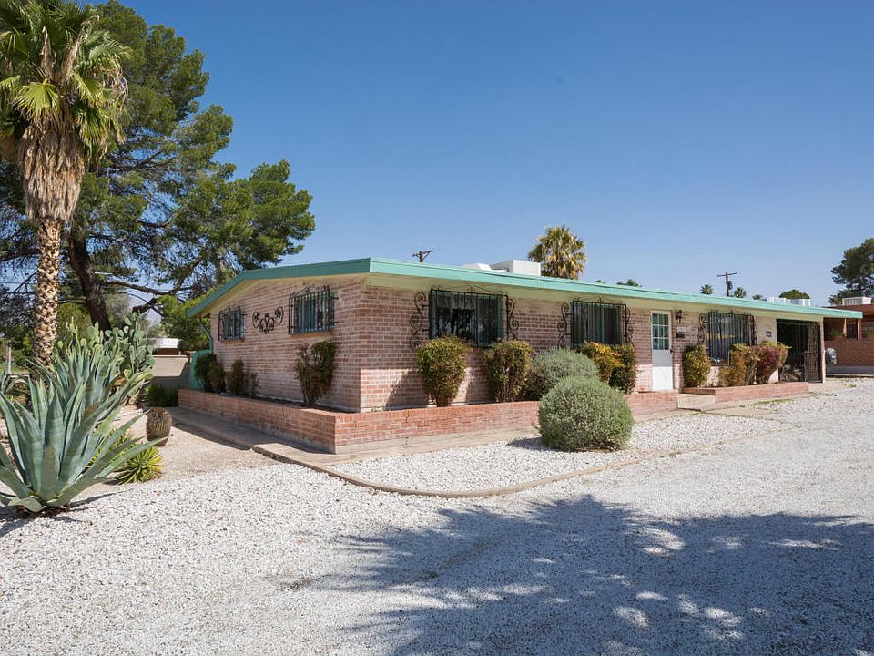 Mid-Century Home in Central Tucson! NE corner lot, mountain views! Open church parking just across the street is a compliment to a quiet neighborhood location. Solid brick construction! Remarkable, screened porch with separate evaporative cooling adds comfrotable living space overlooking the huge enclosed back yard! Great kitchen space! Formal living and dining room. Original tile in baths! Mature landscaping surrounds the home with brick walkways and planters. Single carport can be a garage with just the addition of a grage door. Excellent storage. Don't miss the large laundry/storage room off AZ room. See marketing book for recent inspections and termite warranty papers.