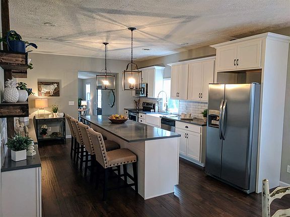 Wapahani Schools! This 4 bedroom, 2.5 bath sits on 1.31 acres. Walk up on the new front porch, the whole home was taken down to the studs, new sub flooring, new electrical, plumbing, new furnace/AC, roof, water heater, water softener, all kitchen appliances. Most of the windows are new. The entire home has been remodeled new flooring, light fixtures. cabinets. counter tops, baths. The garage is new from the foundation up. You won't believe you eyes, the kitchen has a 10 ft long center work island (breakfast bar), kitchen offers some open shelves. Dining room has wood ship boards on one wall. Master bedroom has barn doors into the bathroom and walk in closet. French doors open to back deck overlooking wooded back yard. Family room also has french doors that over look the back yard. Very private area. Nice mature trees on the property.