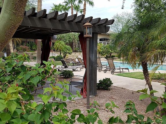 All the amenities of a Gated resort style community! Close to 202, ASU, Tempe, light rail, Phoenix Zoo, Botanical Garden and Shopping. Lush landscaping, 2 pools, fitness center and Clubhouse! This is a great 2 bedroom condo. (no cats please)