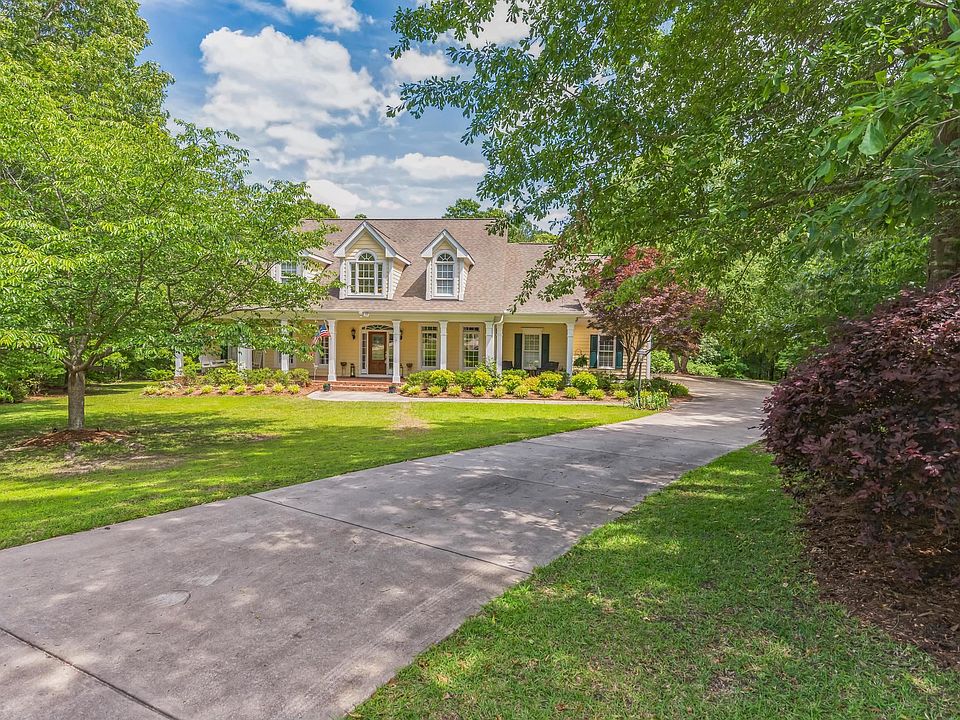 Can you say "Staycation?!" This amazing home sits on almost an 1 1/2 acre lot, providing a peaceful and private setting. This private oasis boasts a heated, saltwater, inground pool. The outdoor space includes a large screened-in porch, deck and pool deck, not to mention an extra large southern front porch for sipping your favorite iced tea. If that's not all, the backyard also has fig trees and blueberry bushes adding to the natural ambiance The house has 4 bedrooms and 3 full baths, providing ample space for a family or guests. The main floor includes an office, which offers a designated space for work or study. The large living area is open to the kitchen, creating an expansive and connected space for entertaining or spending time with family. This open layout promotes a sense of togetherness and allows for easy interaction. The home features both a breakfast area and a dining area with coffered ceilings. The master bedroom is located on the main floor, providing convenience and privacy for the homeowners. Round this all off with tons of storage and a 3 car garage! Whew! This is a must see!