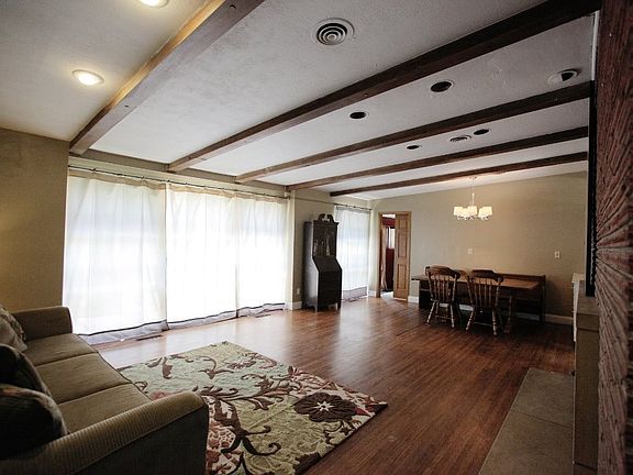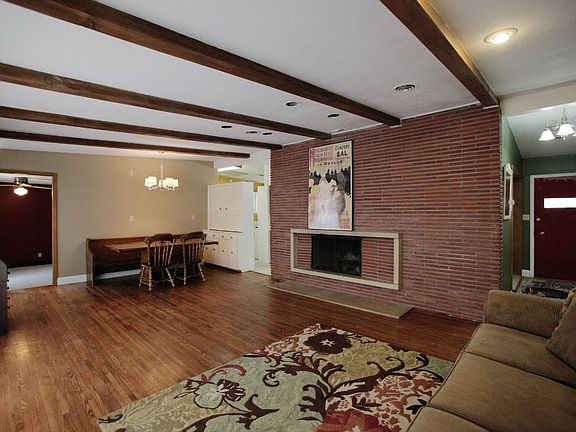 Don't miss this wonderful ranch home on a corner lot. Your family will be drawn to the large living and dining area with beamed ceiling, brick fireplace, original hardwood floors and picture windows overlooking the backyard. There is also a small family room located off the dining room, which would be perfect for an office or studio. From the family room, you can walk out to the large patio and enjoy the fenced yard. Additional storage can be found in the shed in the backyard. Kitchen features abundant cabinet space, and an additional dining area for your breakfast table. As you come in from the oversized two car garage, you will find a large mud room area with sink, washer, dryer and great cabinet/counter space. There is a full bathroom adjacent to the mud room. All three bedrooms are generous in size and have hardwood floors. The master bedroom also has a door that leads out to the backyard. You'll find nice linen storage in the hallway close to the bathroom, which has been recently updated. There are many large trees on the lot that will provide great shade for the hot summer.