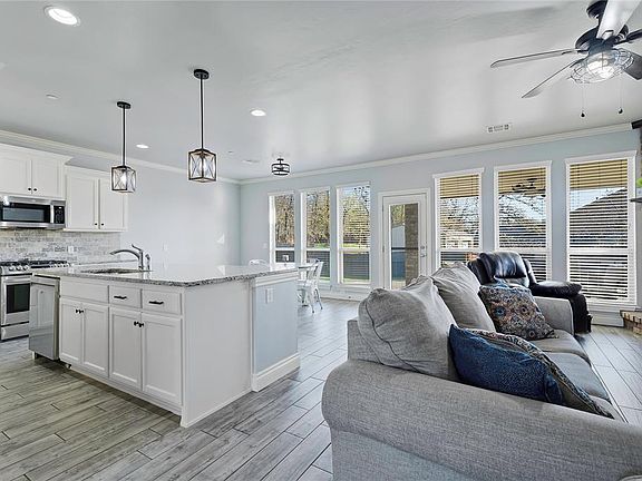 Situated on a spacious ¾-acre corner lot, this stunning home offers an open-concept layout perfect for gatherings and everyday living. The cozy living room features a gas fireplace, creating a warm and inviting atmosphere.