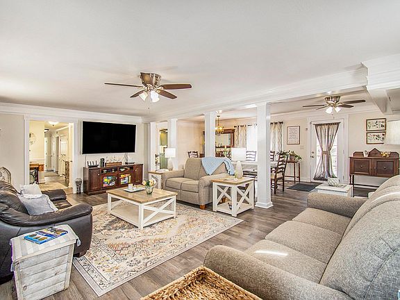 This Charming 4 Bedroom, 2.5 Bath home sits on a picturesque 5-acre lot, featuring a saltwater pool and vibrant gardens that bloom in the spring with roses, dahlias, daylilies hibiscus, and more! Enjoy fresh fruit from pear and fig trees, blueberry bushes, muscadine vines, and blackberries right in your backyard! Inside, the spacious layout includes two oversided upstairs bedrooms --- ideal for homeschooling, a playroom, or a home office. Major updates include new HVAC (2024), septic pumped (2024) and an encapsulated ccrawlspace with a dehumidifieir for added efficiency. A fenced section of the yard is perfect for pets. A rare find with space, privacy, and natural beauty...Schedule your showing today!