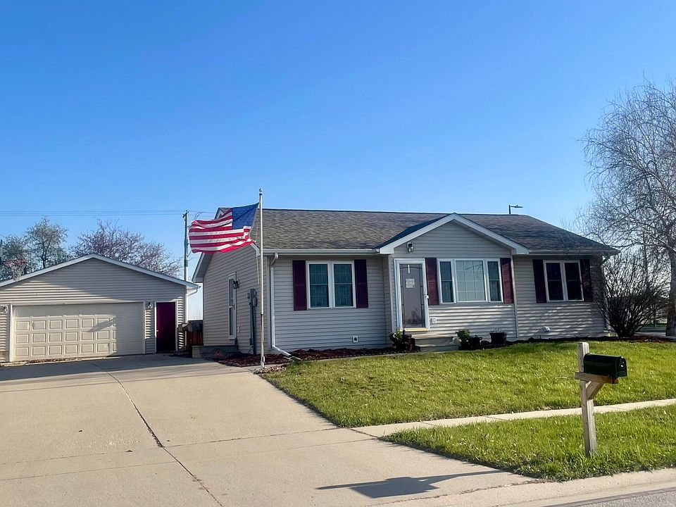 3 bedroom ranch built in 1996 located in Edward's school district. Updated windows 2017. Brand new roof, vinyl siding will be replaced per insurance claim. Primary bedroom with private half bath plus 2 additional main floor bedrooms and a 4th basement bedroom. Oversized 2 car detached garage and privacy fenced backyard. Quick commute to ISU or Des Moines. Seller is offering a $3,000 flooring allowance.