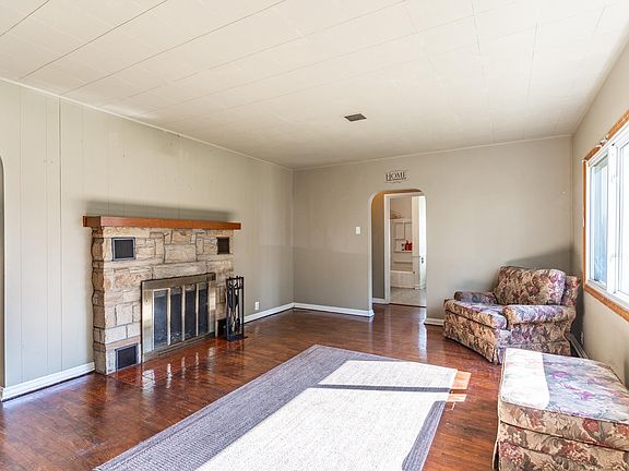 This charming 2 bedroom/1 bath home with spacious rooms throughout has loads of potential and possibilities! Situated on almost half an acre, the curb appeal starts with the covered porch, continues with the large concrete patio out back that’s perfect for entertaining, the gorgeous mature trees, and plenty of room for a garden or whatever you desire. Inside, there’s a wood burning fireplace in the living room, beautiful hardwood floors throughout most of the home, archways, built-ins, HUGE bathroom with double sinks, tall ceilings in the garage, double closets in the primary suite, large pantry, and a spacious laundry room. In addition, there’s a flex room in the back of the home with a closet that could be used as a 3rd bedroom or an extra living space if duct work or a mini split was installed.