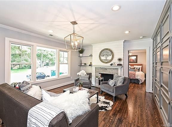 Stunning new renovation! Rare 4 bdrm/3 bath home within walking distance of the elementary school and recreation areas. Custom design features abound in this home! Begin with the extraordinary custom accent wall upon entering, then take note of the shiplap accent walls with floating shelves and fireplace. Spacious kitchen features an island custom built with reclaimed wood and metal accents- a work of art! Abundant cabinetry and open shelving are accented by quartz countertops. Distinctive light fixtures complete the custom feel. Enter the master suite with a shiplap ceiling and luxury bath with quartz counters, dual vanities, oversized shower with custom tile, and walk in closet with shelving. Mud room/laundry room/back hall are beauty and function combined! The split floorplan gives privacy, and one bedroom has an en suite bath. Renovation inc. a tankless water heater, all new plumbing and electrical/wiring, windows, and roof.