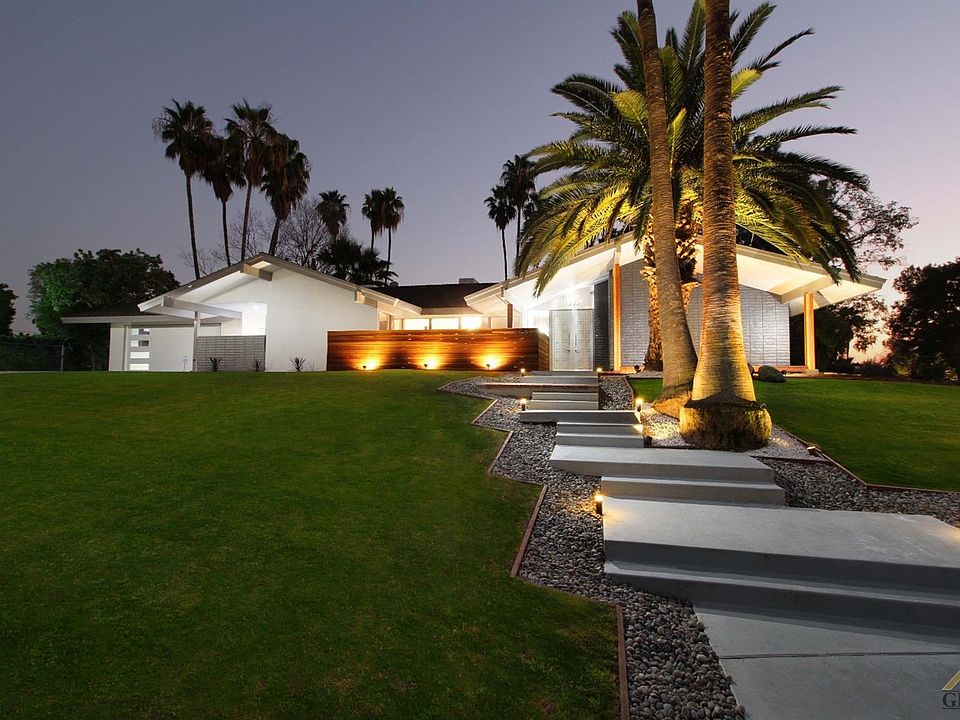 Once in a While we come across a unique piece of property such as this one. A beautiful mix of mid century and modern design blend perfectly to provide open spaces and amazing design features. To make this even more appealing the property is located in one of the best streets in the prestigious Bakersfield Country Club . This home has been refined to its full potential by adding European style kitchen and bathroom cabinets. Solid Hardwood floors throughout (except for wet areas) The fireplaces have been converted into great conversation starters with their vibrant and unique design. The restrooms offer both style and functionality with their modern fixtures, glass tiled showers, and lighted mirrors. The large and open living spaces overlooking a large backyard are great for entertaining. There is a separate multipurpose room with its own entrance of the side of the home adds even more flexibility of use to this amazing home. This home screams entertainment. Be the talk of the town!
