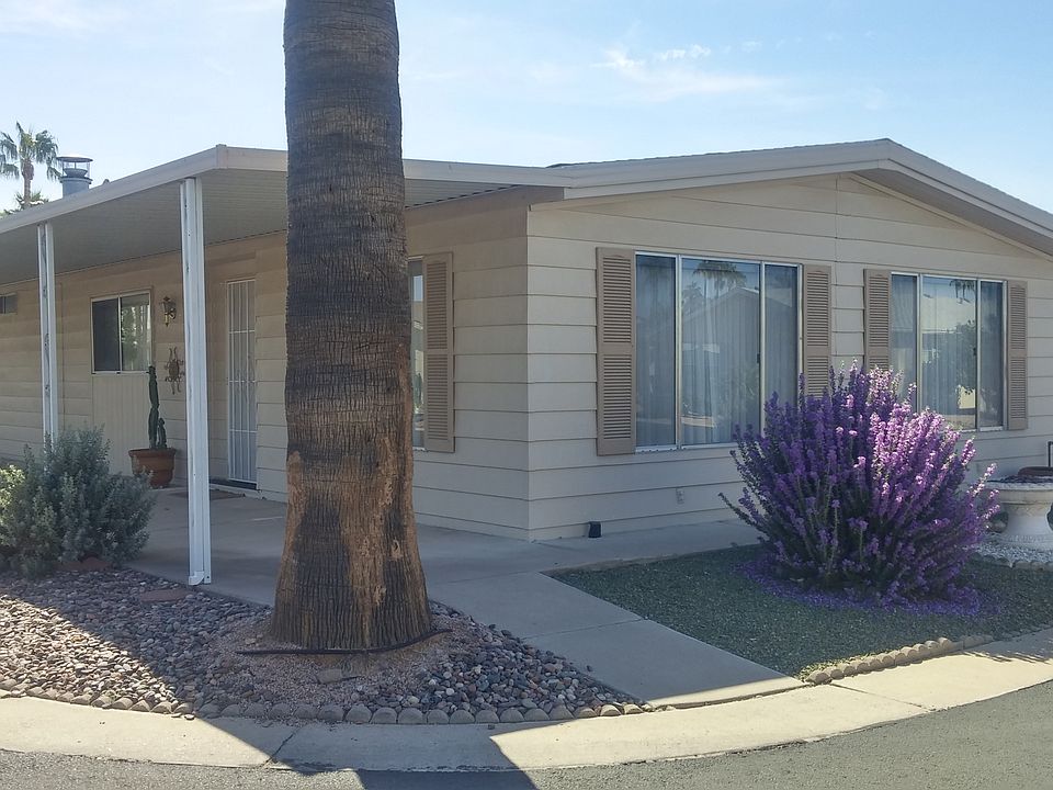 2 Bed / 2 Bath Double Wide Mobile Home For Sale in Mesa, AZ 85215. Eat-in kitchen with built-in oven/microwave combination, dishwasher and refrigerator, electric cook-top, double sink with single lever faucet, massive overhead and base cabinet space, buffet and china cabinet, spacious living room with beamed ceilings-vaulted-giving a sense of greater space to the rooms and allowing for the installation of efficient ceiling fans, roomy family room with fireplace,King-size master bedroom, walk-in closet for storing all of your clothing, shoes, and accessories without having to crowd the items making it easy to stay organized, comfortable guest bedroom, Stand up shower w-sliding door enclosure, obscured glass and through the rail towel bar, Full-size indoor laundry with clothes washer and dryer included-, folding station with overhead and base cabinets, built-in pantry cabinet for storing nonperishable food item, coat closet, toiletry cabinet and large built-in linen closets with easy access shelving to maximize usable space. Workshop and-or extra storage, attractive low maintenance and cost-effective landscaping. Immediate possession, Do nothing but move in. About the Community: Upscale active adult resort near Red Mountain-This friendly, gated community features a lifestyle for people who appreciate the tranquil setting filled with mature trees, peace and quiet, and a relaxed atmosphere where neighbors enjoy each others company, It's easy to find excitement when you are in the mood for activities, but always refreshing to come home to a genuine village in the heart of Mesa, Sunrise Village's full-time, on-site Activities Director keeps life entertaining, with fun for people of all interests, Meet your neighbors for regular events like Friday night bingo or a Ladies Luncheon, And take advantage of special activities like a Tropical Night theme party or Tacos By The Pool, Drop by the Sunrise Village clubhouse to enjoy a world of attractions, Catch up on the news or email at the internet library, Join a game in the billiards room, or try your hand at horseshoes you may discover a hidden talent Work out at the fitness center to stay in shape for all the activities around you, then relax with refreshments in the TV lounge, Splash in the sparkling swimming pool, or just lounge and enjoy the sun, Take advantage of the arts crafts center to indulge your creative flair, then head home for dinner with friends, It's all part of the lifestyle at Sunrise Village