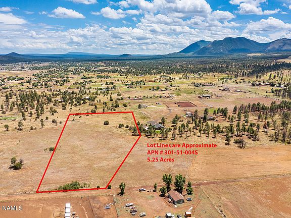 5 acre parcel with panoramic views of the San Francisco Peaks. Land includes easement to the National Forest. One additional 5 acre parcel available for a total of 10 acres can be purchased (APN #30151004T. Parcel 30151004T has panhandle bordering the National Forest). Direct access to lot and available utilities from Pumpkin Patch Rd. Raw land - no utilities currently; buyer responsible for all utilities. Property zoned AR-5 which allows for horses and other animals subject to county zoning ordinances. Taxes will be assessed based on parcel split which Assessor has not completed yet at time of listing. Survey available. Listing agent related to the seller.