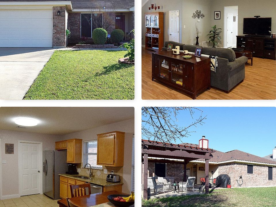 Check out this spectacular 4 bedroom, 2 bath brick home in the heart of Killeen. The manicured lawn catches your eye from the very start. From the moment you enter the house the stunning open floor plan takes your breath away. Crown molding, recessed lighting neutral paint colors and wood-look tile are only some of the gorgeous features of this home. The floor to ceiling brick fireplace is certainly the star of this room. The formal dining area is accompanied by a beautiful chandelier and large window. A few steps away the kitchen is perfect for any level chef looking to cook a fantastic meal. This kitchen boast granite counter-tops, stainless steel appliances, ceramic tile floor, updated LED lighting and plenty of storage space. Step into the master retreat and start relaxing. The master features a vaulted ceiling, modern lighted ceiling fan, two windows on either side of the room and the same gorgeous wood-look tile that carries through-out the house.