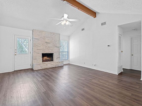 Tucked away on a quiet cul-de-sac, this updated 3BR/2BA house has everything you need to feel at home: vaulted ceilings with beams, a stone fireplace for cozy nights, and a bright kitchen with modern appliances + gas cooking. Use the 500 Sq. Ft Flex space for an office, play area or extra living. Step out to a large, tree-filled backyard and private patio for your own little slice of Austin outdoors. Easy access to shopping, dining, and major highways makes this a commuter-friendly spot with all the South Austin vibes. Pet friendly and available for immediate move-in with approved application.