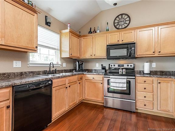 Looking for a 3 bed 2 bath slab in Charlestown for under $195k? Check out this brick beauty in one of Clark County's hottest developments, Hawthorn Glen! As you enter from the covered front porch you'll notice the soaring ceilings wrapped in crown! The wide open living rooms leads you in to the large eat in kitchen the comes equipped with all of the appliances so there's nothing left to buy here. The split bedroom plan features a master suite with a separate tub and shower. Out back you'll find one of the best lots in neighborhood that backs up to a large farm for some amazing views and sunsets! This one won't last, so call today for your private showing! Sq ft & rm sz approx.
