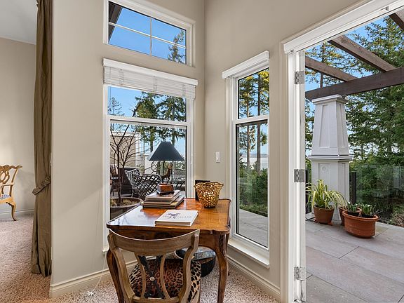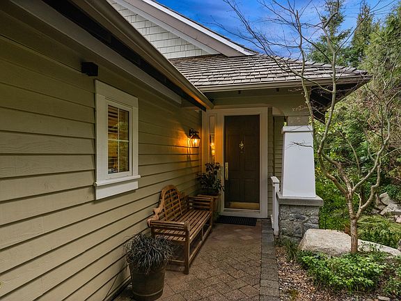 A very private entry leads to one of the finest properties in Edenshaw. As the door swings open a crisp ocean breeze rises through French doors filling the incredible volume of the open main living space with 20' ceilings. Towering trees gently sway just beyond a broad balcony where views reach from the City lights, & Burrard Inlet to sunsets over Vancouver Island. The large kitchen is newly updated w/ Wolf & Miele appliances. A broad staircase leads down to 3 large bedrooms including the sophisticated primary suite with elegant 5pc bath. Across a wide hall is another beautiful 5pc bath next to a generous laundry room and storage space. The lower level opens to a walk out patio and gardens with direct access to trails. 80' driveway to a 380sf double garage.