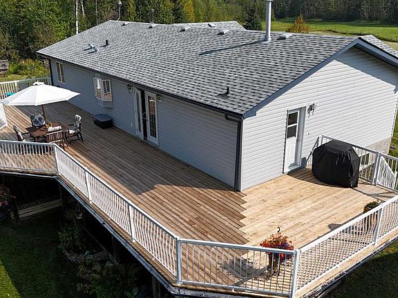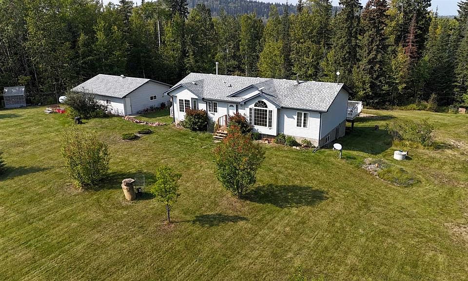 Serene Country Living. Nestled on 18 peaceful acres and only 12k from Edson, this property offers the best of quiet country living with easy access to town on mainly paved roads! This is 1500 sq.ft. modular home on a full concrete basement and features a 54' deck spanning the length of the house, newly updated deck boards, perfect for entertaining or simply soaking up the tranquil surroundings. The walkout basement leads to beautiful landscaped grounds accented with perrinials and Mayday trees. Inside, the main level boasts an open-concept kitchen, dining and living area highlighted by a cozy woodburning fireplace. There are 3 bedrooms upstairs and 1 down, 3 bathrooms, a cold room and plenty of storage throughout. (Note. some mudding and taping required in the basement). Additional features include a 28x30' insulated garage (not heated), large fenced garden area with apple trees and a shed to store your garden tools. Wood shed stays and currently has a years worth of firewood. Fire pit area for gatherings, BBQ hookup for gas or propane,. This acreage offers space, privacy and everything you need for a self sufficient life style, all within minutes of Edson.