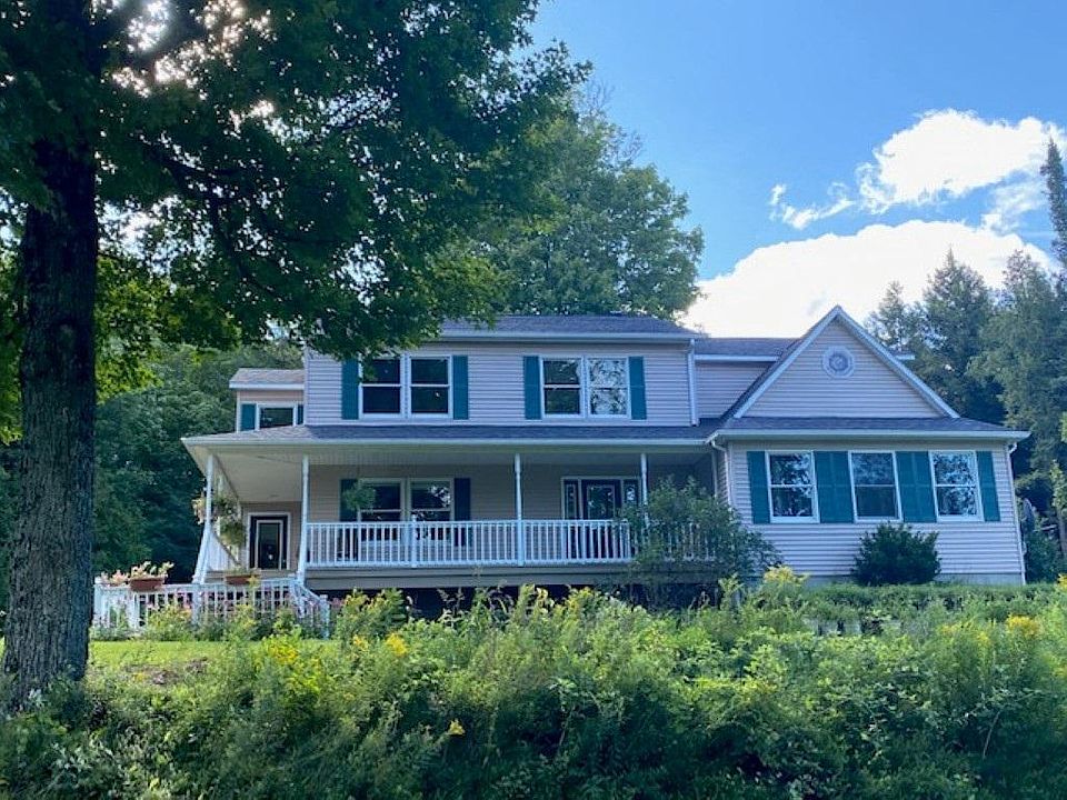 In Coventry Vermont, a town with no municipal tax or zoning, you will find this 6 bedroom, 4 bath home that is as close to a country estate as one would find and also features an in-law apartment wing. The first floor is open concept that makes it great for raising a family or entertaining. There is a first floor master bedroom with the others on the second floor. The basement is dry and usable and features a one car garage. Sitting on 23.40 acres this property includes a sugar bush and spring fed pond which can be seen from the front covered porch. There is a large garden area and ample lawns. This is a a private country home that cannot be seen from the main road but is still close to all amenities. This property and surrounding area is recreation friendly as Coventry allows atv's to use their town roads and the snowmobile access is close. Coventry town is family friendly with many advantages geared towards kids and education. This is a nice property and is realistically priced. We expect it to move quickly.