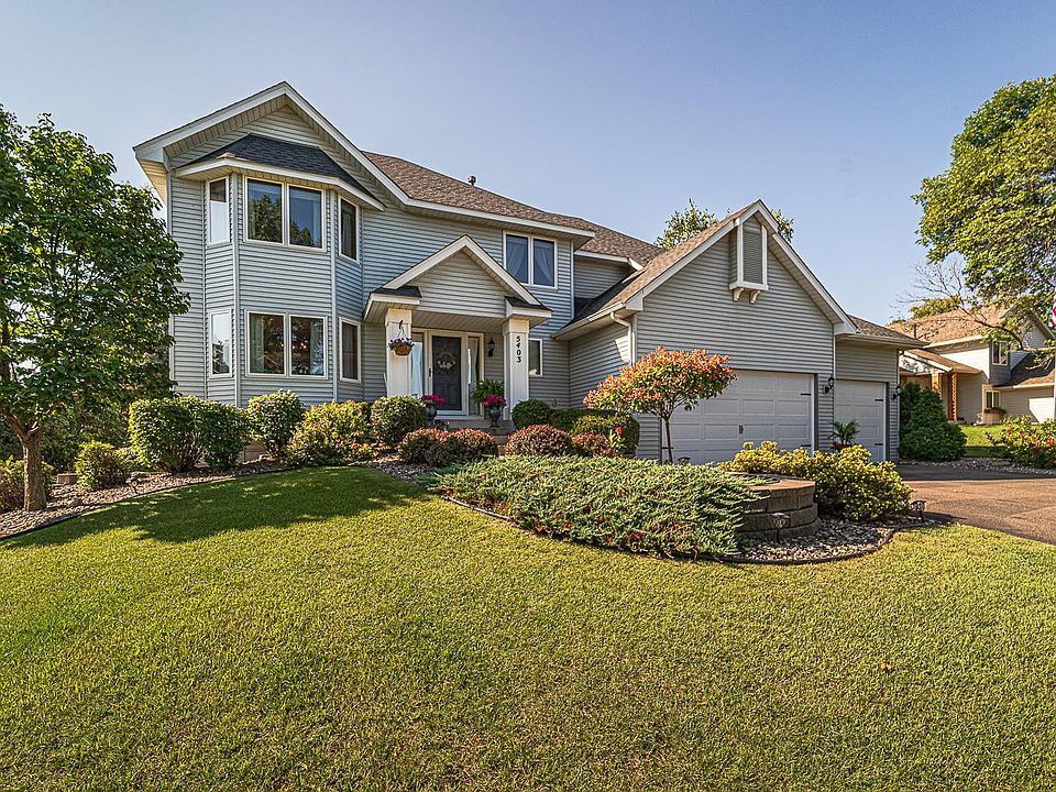 4BR 4BA home close to Sand Point Beach/Boat Launch offering a park-like backyard setting! The impeccably-maintained interior showcases wide-plank hardwood floors, crown molding and a fresh color palette throughout! The main floor offers a generous kitchen with granite counters and updated appliances that opens to the family room with a wall of windows and a gas fireplace. Flex spaces offer lots of living options. Upstairs are 4BRs and 2 FULL baths. The finished lower level has daylight windows with southern light in the family room, wet bar and hobby spaces. BRAND NEW AC installed 9/23/2024! NEW LIGHTING, HARDWARE, and FAUCETS throughout! Additional features include NEW MARVIN WINDOWS, NEW ROOF (2023), NEW INSULATED GARAGE DOORS (8/2024), composite deck, and a heated/insulated garage with epoxy floor. You’ll love the convenient location just minutes from shops, and steps from the beach, with quick access to the high school, middle schools, and the river bridge.
