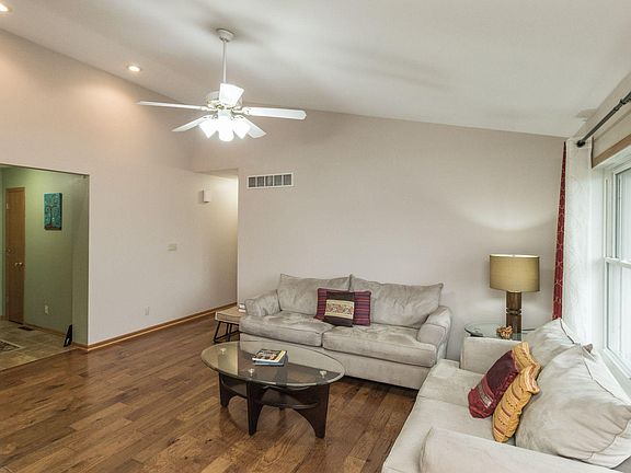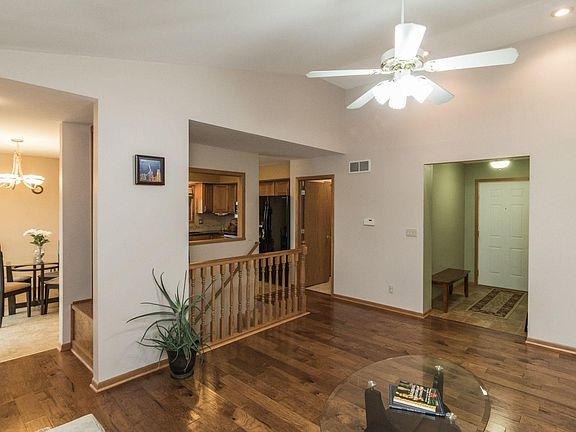 New windows on north side of house April 2019 - living room, master bedroom and sliding door. New roof Fall 2017, new siding on front and west sides of house 2018. New furnace and A/C 2014. New water heater 2011. Kitchen updates include flooring, appliances, and quartz countertops. Hardwood floors in living room. Freshly painted living room, kitchen and dining area. Ceramic tile shower in master bathroom. Walk out lower level features large family room, fourth bedroom and bathroom with shower. A bonus room in the basement for toys or exercise equipment. Deck off the dining room leads to the patio on the lower level. Walking distance to Edwards Elementary. 2556 square feet total finished.