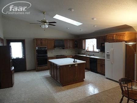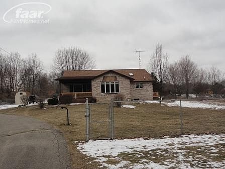 Pond, 5 acres with newer roof, remote gated fence. 2-3 Bedrooms. All brick 1800 sq. ft. with alarm system, oversized attached garage 10X12 shed. Fenced yard, partially finished lower level, great condition, open floor plan, large bedrooms, walk-in closets, 6 panel doors. First floor laundry, wall safe. Stereo intercom system. Great kitchen with large island. 6 panel doors, immediate possession.