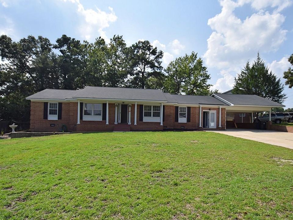 Large 3 bdrm 2 bth ranch in quiet established neighborhood. Living room and formal dining room. Open kitchen attached to sitting area. All the bdrms have beautiful hardwoods. Great room with deep storage area. Enclosed rear patio, fully fenced, private yard with ext storage shed. Double carport. Large corner lot. 10 min to military base and shopping. Pet Friendly with 40lb Weight Limit.