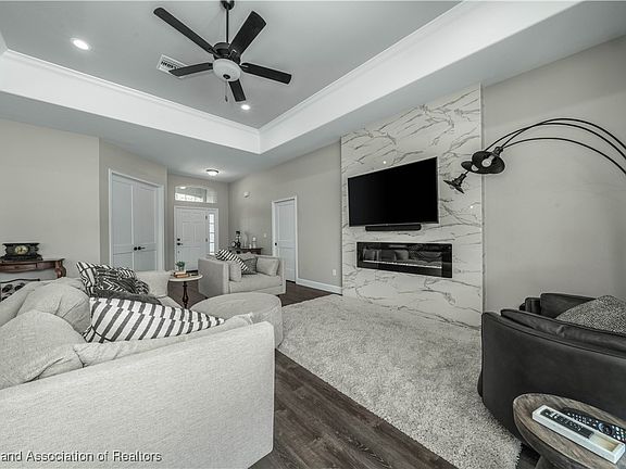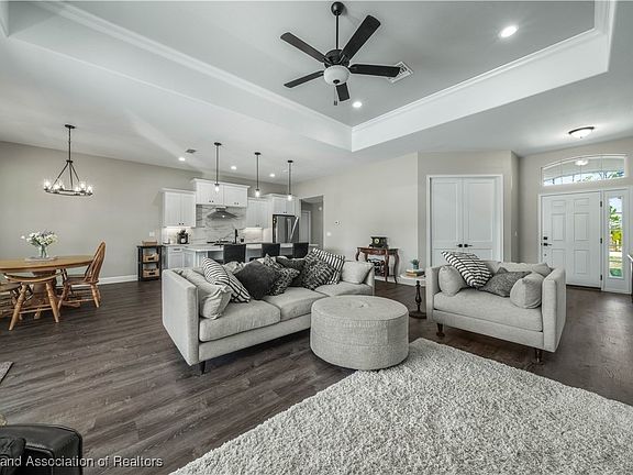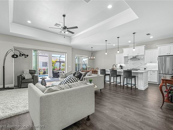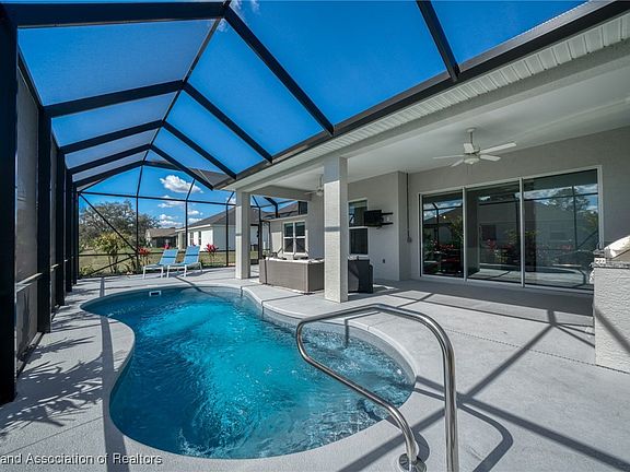 Stunning Hornick Homes Build with Luxury Upgrades and Prime Location! This better-than-new home is a rare find, offering all the benefits of a recently built property with an extensive list of high-end upgrades! Built in 2023 and recently sold in 2024, the home boasts an inviting and spacious design, enhanced by custom touches that elevate both style and functionality. Key Features: Over $100,000 put into the home between the pool, pool cage, outdoor kitchen and professional landscaping. Do you want a new home but do not want to spend the hard cash on installing a pool? This is the perfect scenario. Most banks won't finance new construction AND the construction of a pool. Here you have a home built in 2023 with a Heated & Cooled salt water pool, 14x44 pool cage already installed and tastefully, professionally landscaped with plants, palms and hedges. Inside you have 3 generously sized rooms plus an office! The grand room features a beautiful step up ceiling and is complimented with a built in electric fire place, 10 ft. walls and 8 ft. doors. This space also features a multi slide glass door that leads into the pool area and provides great natural light. The blinds in every room ensure complete privacy and is another item you typically will not find in a new construction home. Each secondary room measures 12x12 including the office, the master suite features a mini step up ceiling and measures out to 15x15. Here it all flows into master bath with walk in shower, walk in closet and double vanity sinks. The Kitchen is elegantly finished with quartz countertops, custom built cabinets with puck lighting and stainless steel appliances. It's coupled together with a long island with room for stools and luxury vinyl flooring through out.