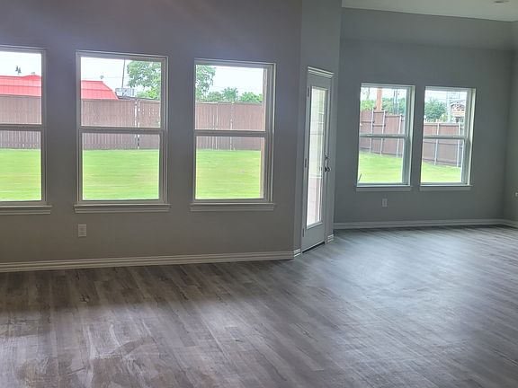 The gorgeous primary suite consists of the large bedroom, dual-vanity bath and huge walk-in closet. There are three (3) additional bedrooms which has access to a full bath. These rooms are located on the opposite side of the home. Large, fenced in back yard, 2 car garage with driveway and only 20-25 min to downtown Dallas. Refrigerator included with ice & water dispenser. Very quiet, beautiful neighborhood with quick/close freeway access.