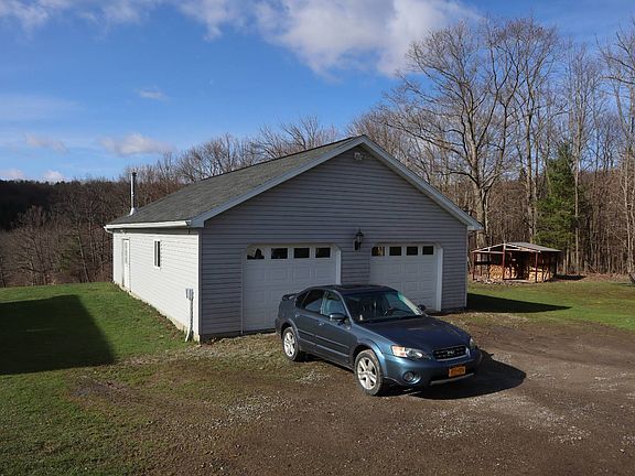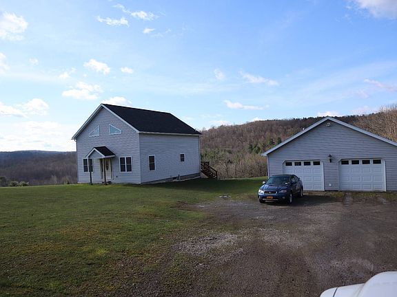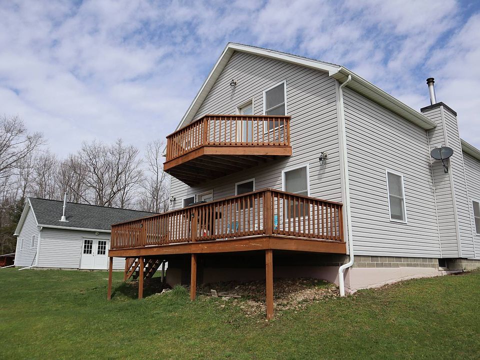 Enjoy hunting or relaxing with million dollar views on this quiet country road. Take in a warm fire in your custom built 2 bedroom, 2 full bathroom home finished beautifully inside with rustic décor and charm. Both upper and lower bedrooms have all south facing windows for views to the pasture where you can watch deer, bear and turkey in your back yard. Sip coffee on either the upper or lower deck, taking in the wildlife and solitude. All stainless steel appliances greet you in the kitchen for cooking enjoyment, while the large lofted living room receives you with warmth on fall evenings by the Lopi Liberty wood stove. The owners have enjoyed taking mature deer, bear and turkey practically in the back yard, and the quantity of game is amazing, evident by the afternoon pictures of herds of deer feeding daily. The creek bottom is a natural corridor for all game, especially bear and roosting turkey's. Strategically the high house is placed over a three field food plot and within reach of the creek for a sure shot hunter. A network of ATV trails provides access to all points of the timber stand. Mature Maple, Beach, Oak, Ash and some Pine and Hemlock were observed and none have been harvested in over 20 years. If you are looking for that special place that is close to city limits, but out in the country just far enough to find peace and quiet, you've found it here on this property with star light nights and breathtaking views.