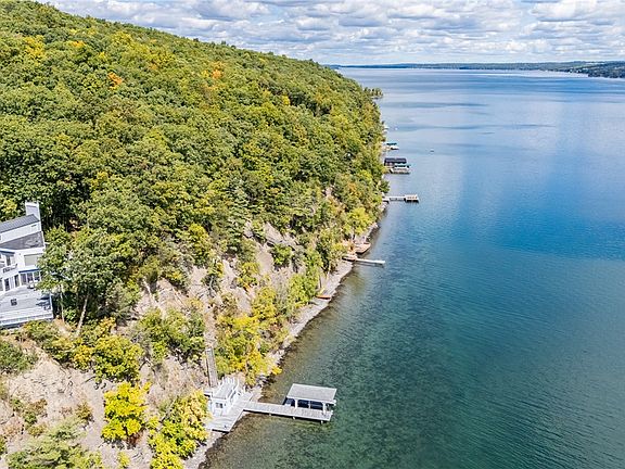 Open House BY APPOINTMENT ONLY Sunday 10/26 11:30am - 1:00pm.  SHOW STOPPING BILL CHAPIN DESIGNED CONTEMPORARY DREAM HOME OVERLOOKING CANANDAIGUA LAKE WITH STEPS DOWN TO YOUR OWN CABANA,BOAT HOUSE WITH LIFT, AND DOCK. OVER $800,000+ IN RECENT, STATE-OF-THE-ART RENOVATIONS THAT INCLUDED A FULL WHOLE HOUSE "GUT"*** SITUATED ON OVER FIVE ACRES, THIS TWO TO POSSIBLY THREE BEDROOM HOME WITH WALLS OF WINDOWS, SOARING CEILINGS WAS PROFESSIONALLY DECORATED WITH ONLY THE FINEST MATERIALS THAT MONEY CAN BUY.  MAGNIFICENT GREATROOM WITH FIREPLACE AND WET BAR** STUNNING KITCHEN WITH GLASS COUNTER TOPS AND TOP OF THE LINE APPLIANCES.**TOTALLY RENOVATED BATHROOMS WITH HEATED FLOORS**NEW HARDIE BOARD SIDING** FULL HOUSE GENERATOR**CARPORT**HOT TUB** FIREPIT**NEW PITCHED MEMBRANE ROOFS*SPECTACULAR STONE WALLS AND WALKWAYS WITH BREATHTAKING ARCHITECURALLY DESIGNED GARDENS/GROUNDS**APPROVED BUILDING PLANS FOR A SEPARATE GUEST HOUSE**BEAUTIFUL VIEWS FROM NEARLY EVERY ROOM AND DECK*** OPPORTUNITY OF A LIFETIME!!