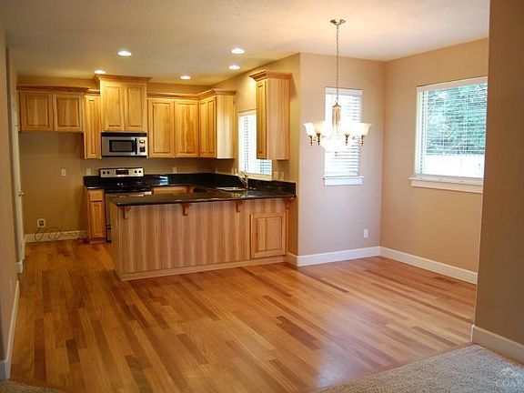 Easy living near schools & parkland. Contemporary kitchen has solid surface counters, stainless steel appliances, pantry storage & wood floors shared with the adjacent dining area. Living room has a gas fireplace with media storage above. Main floor has a den/office. The 3 bedrooms upstairs are conveniently near the laundry room. Huge bonus room upstairs has vaulted ceiling. Large master bedroom suite has walk-in closet, large soaking tub and shower. Fenced back yard with concrete patio.