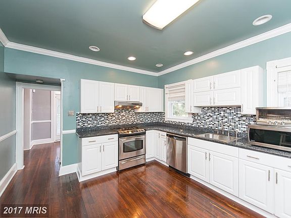 Totally renovated 3BR, 2FB Colonial! Eat-in kitchen remodeled with stainless and granite open to the dining room. Both bathrooms have been redone. Beautiful hardwood floors on main - freshly painted in decorator colors throughout. Front porch and patio for summer nights. This home has a fenced backyard and is in a great location with Baltimore County schools. Driveway has parking for six cars!