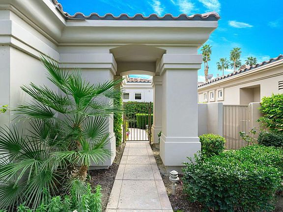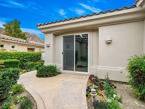 It doesn't get any better than this in South La Quinta. South-Facing backyard pool and spa with stunning views of the 6th hole tee box & fairway, all set within the beautiful Santa Rosa mountains. A well designed, functional floor plan in this detached condo makes the most of views and sq. footage with high ceilings and lots of light. The primary and guest bedrooms in the main house both are en-suite. There is also a den that can be used as a 4th bedroom or large office. Great Room focuses on views, fireplace, entertainment. Gourmet kitchen, wet bar. Quality materials throughout include attractive base boards, crown molding and enhanced window molding. The master suite is along one wing for privacy, one ensuite guest room is along another hallway. The casita has sliders to front courtyard as well as separate door to entry gate. At night the mountains enjoy a soft glow from the lights placed at the base for true resort feeling. HOA pays for all gardening, exterior painting, cable tv, garbage (everything but private pool maintenance).