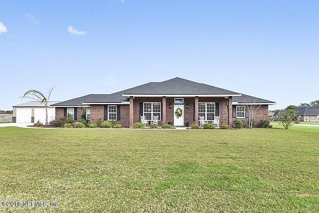 Original Owners have kept this home in 'Better than new' condition.Located on 1.34 Acres. Brick Beauty with that elegant feel, Open Floor Plan, Beautiful solid surface flooring except in bedrooms,Upgraded Equipted Kitchen, Owners Suite is private, walk-in shower,Garden Tub, Large vanity. Large Laundry Room with lots of cabinets, sit on your covered Lanai and enjoy nature looking over the large,stocked lake. Attached 2-Car Garage and a 3-Car detached Garage/Workshop so plenty of room for toys or storage! Enjoy this neighborhood taking walks and enjoying the country feel close to everything. Great schools in this Nassau County area, check out this home today, you will be glad you did.
