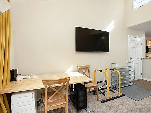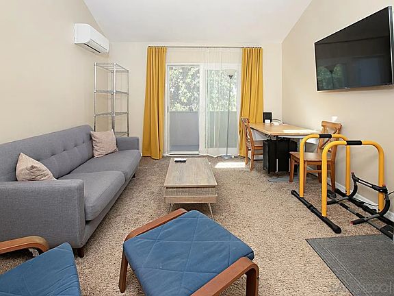 Modern upper level 1 bedroom condo located in a gated community. This home has a balcony with views of a pool and the residential Clairemont community. This home features a new in-unit washer & dryer (replaced March 2020), new refrigerator (replaced March 2020), new dishwasher (replaced December 2020), new stove (replaced August 2022), new microwave (replaced August 2022), and new Mitsubishi AC Units (replaced September 2021). Living room has vaulted ceilings with lots of natural light and a sliding door to the balcony and outdoor storage closet. Unit is located on the outer edge of the complex which allows for a more private and open view. Complex is conveniently located within walking distance to multiple shopping centers and restaurants.