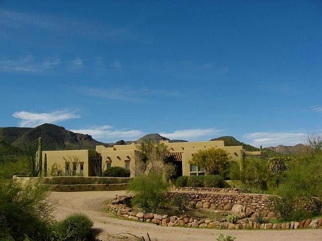 Now this is Cave Creek! Pure. Authentic. The Real Deal. From the hand-sculpted vegas to the enormous windows facing Elephant Butte and Spur Cross, this custom Sante Fe inspired home on five acres exudes the charm, character and privacy of the idealized Creeker lifestyle. Designed for entertaining, the main living area features high ceilings, rough-hewn beams, rustic cabinetry and wet bar, and reach-out-and-touch-the-mountains views. The dining area is a true room-with-a-view -- sunrises, wildlife, and the surrounding mountains. In addition to the large master suite there are two additional bedrooms/offices, plus a unique covered outdoor area for gardening or a doggie run. Just Reduced $50,000!!!