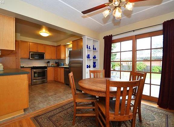 Beautiful home in an excellent part of Cully. Updated kitchen with maple cabinets and SS appl. Oak hardwoods through-out main floor. French doors from dining room lead out to amazing oversized backyard with deck and hot tub. Full finished basement with family room, possible 4th bedroom and newly updated 2nd full bath. Attached garage too! Close to Kennedy School, New Seasons and Alberta without the astronomical price!