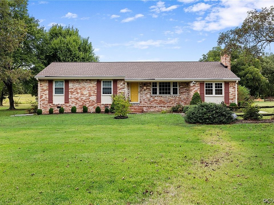 First offering of this classic, solidly built, brick, 1 level home w/ detached 2 car garage. Sited on over an acre in the picturesesque setting of Matoaca with views to the historic Bellevue plantation. You will notice recently refinished hardwood floors, vinyl windows, fresh neutral paint, new appliances, roof that was replaced in March of 2023. The kitchen cabinets in this home are custom, harvested from a tree that was on this property. This home is the perfect blend of original vintage items and modern day updates. The family room offers you side door entry to the home, cozy paneled walls and a gas fireplace. You can move right in and make a home while deciding how to make the place your own. There is a 28 x 40 detached 2 car garage/workshop, it has loads of space & tons of opportunity. The steps to the second level of this building offer you limitless options since it was originally designed for another living space & has cast iron drops. The sunroom on this home was added in the early 2000's offering a bright and sunny room looking over your patio and the expanse of land. Minutes to Matoaca Elementary & Middle, to I-85, I-95 & 460 and an easy commute to Fort Gregg Adams