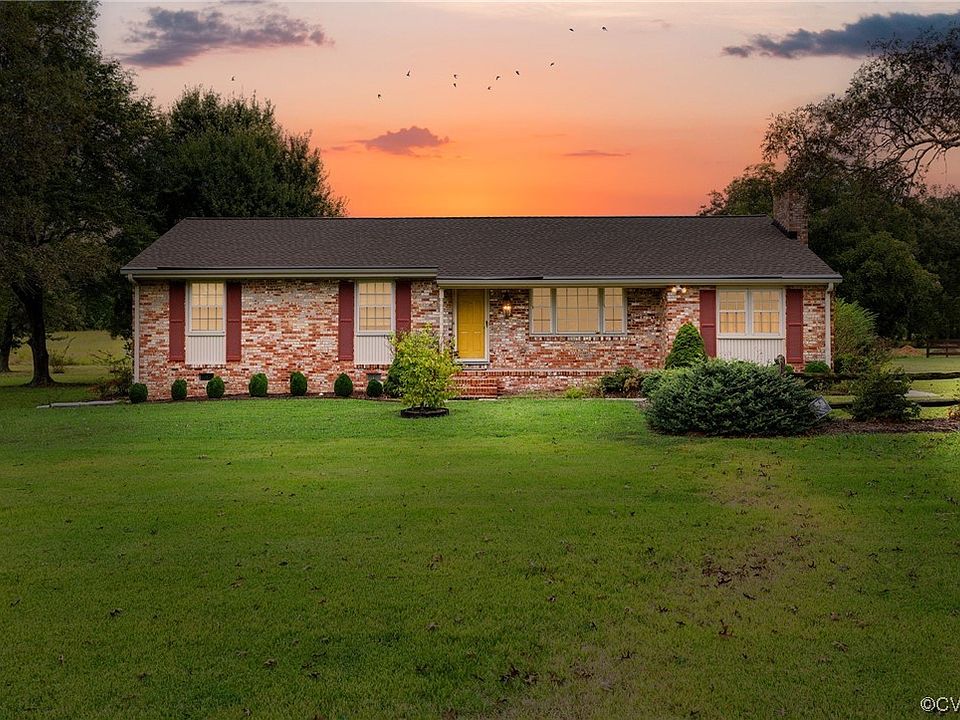 First offering of this classic, solidly built, brick, 1 level home w/ detached 2 car garage. Sited on over an acre in the picturesesque setting of Matoaca with views to the historic Bellevue plantation. You will notice recently refinished hardwood floors, vinyl windows, fresh neutral paint, new appliances, roof that was replaced in March of 2023. The kitchen cabinets in this home are custom, harvested from a tree that was on this property. This home is the perfect blend of original vintage items and modern day updates. The family room offers you side door entry to the home, cozy paneled walls and a gas fireplace. You can move right in and make a home while deciding how to make the place your own. There is a 28 x 40 detached 2 car garage/workshop, it has loads of space & tons of opportunity. The steps to the second level of this building offer you limitless options since it was originally designed for another living space & has cast iron drops. The sunroom on this home was added in the early 2000's offering a bright and sunny room looking over your patio and the expanse of land. Minutes to Matoaca Elementary & Middle, to I-85, I-95 & 460 and an easy commute to Fort Gregg Adams