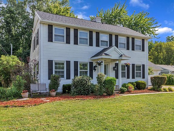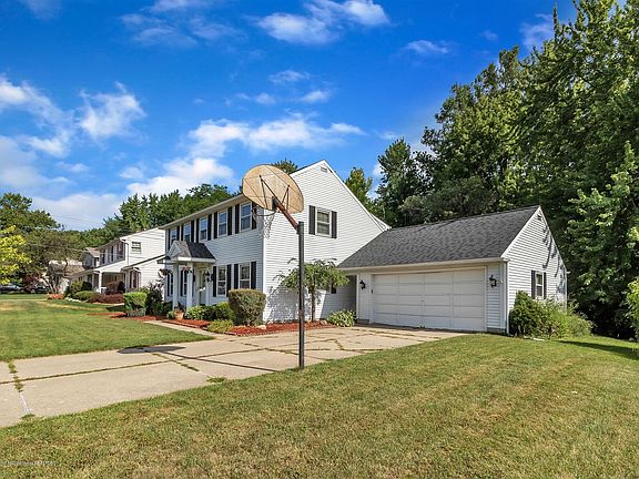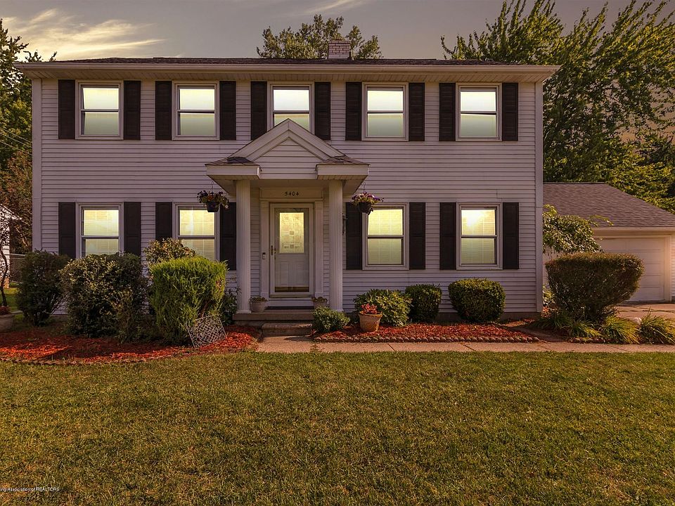 Wow! Welcome to 5404 Ridge Ridge Dr in Delta Township, this colonial two story will not disappoint. The entryway introduces you to the updated flooring throughout the first floor. The large living room is perfect for entertaining and connects to the dining room, complete with scenic views and beamed ceiling. The eat in kitchen has updated appliances and tons of cabinet space. Off the kitchen is the 3 seasons room and patio, perfect for enjoying sunshine and nature without leaving your home!Upstairs has four bedrooms and two full baths including the master suite with double closets and tiled shower.The basement features storage, two bonus rooms, perfect for a workshop and play/exercise room and huge laundry room with built in cabinets.This home is in the perfect location, close to schools, highways, shopping and backing up to Grand Woods park, the yard offers privacy and convenient access to trails. Call for a tour today!